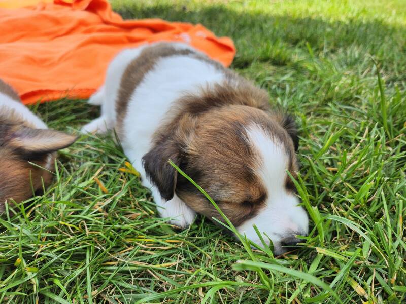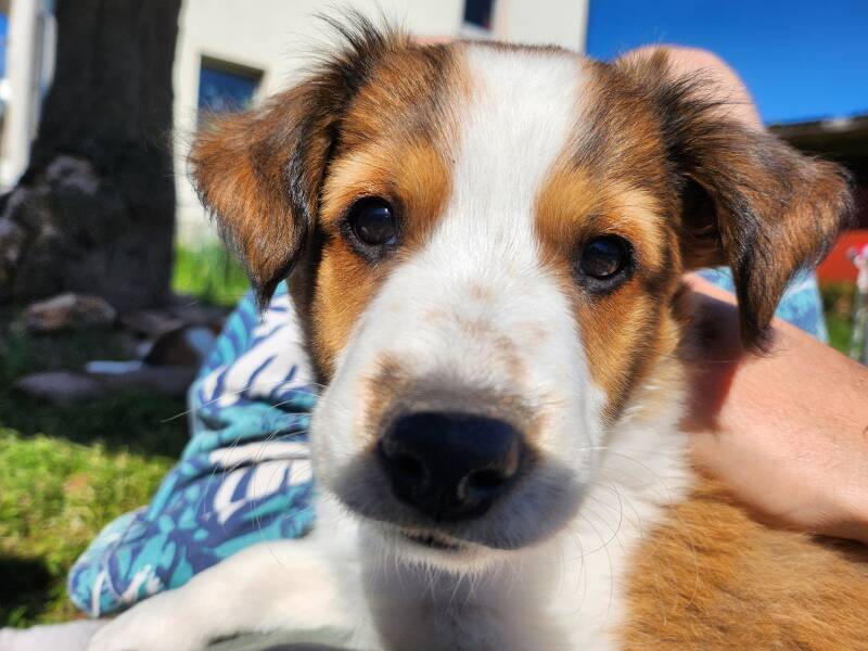 Von Geburt an, war und ist Akaami nach wie vor der größte Rüde aus dem Wurf. Abgesehen von seiner Größe war er gut durch einen markanten Fleck an seiner rechten Halsseite und einem größerem Fleck rechts an seiner Nase zu erkennen. Wir nennen ihn auch gerne unseren sanften Riesen, denn Akaami brachte so schnell nichts aus der Ruhe.
