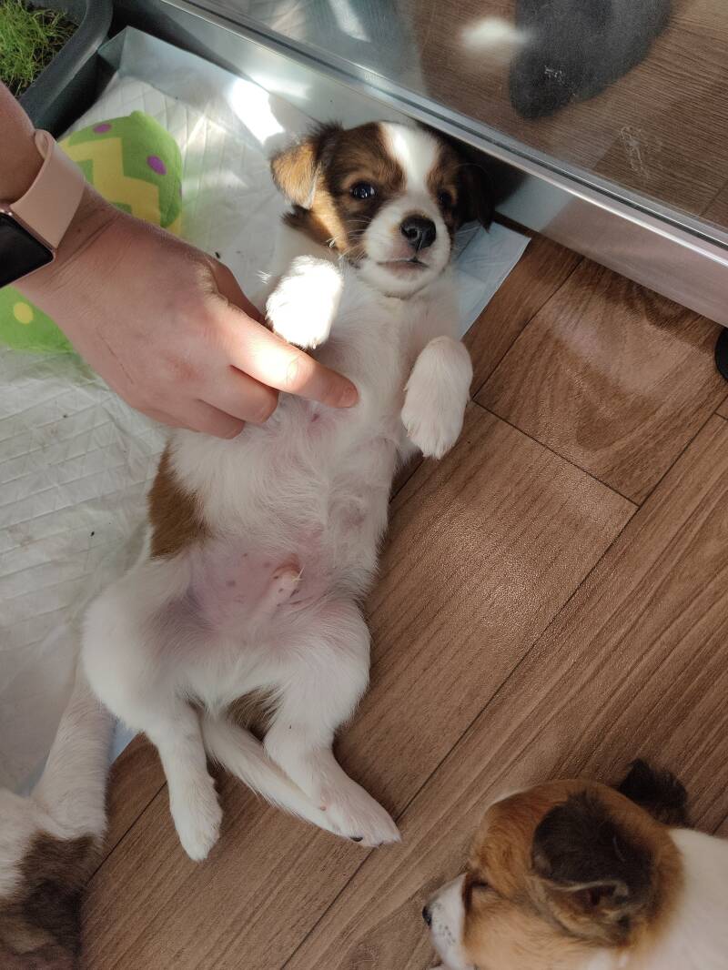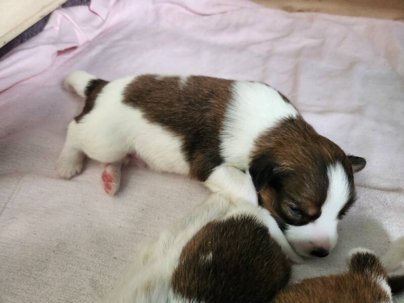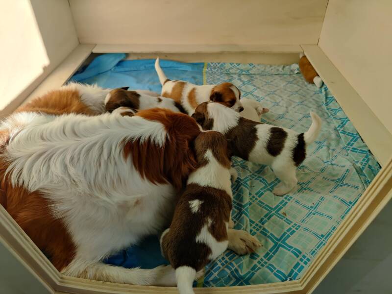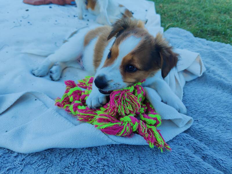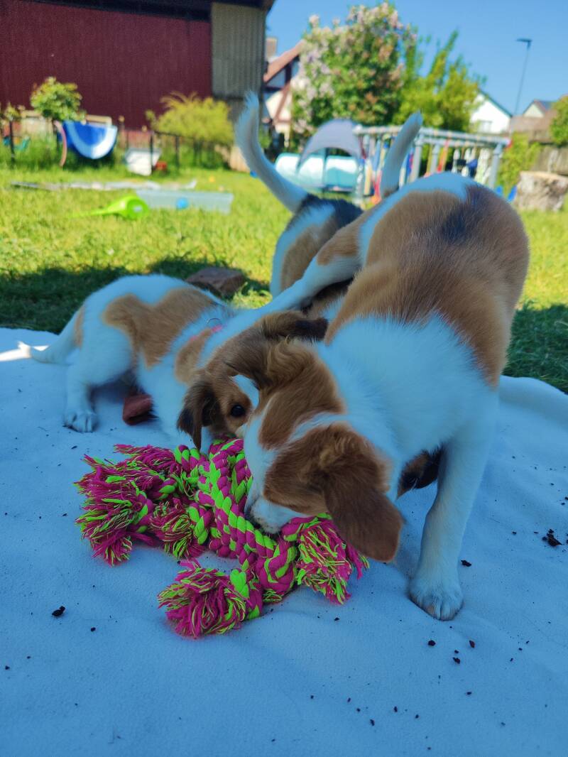 Archie/Toni ist unser Rüde mit dem höchsten Braunanteil im Wurf. Dadurch war er ähnlich wie Alba immer schon gut von den anderen Rakis zu unterscheiden.