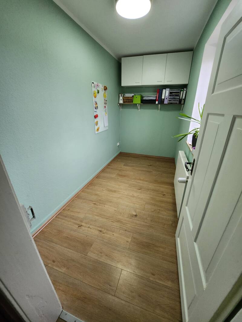 Das Wurfzimmer ist bei uns bis zur 5. Lebenswoche unser eigentliches Arbeitszimmer, welches für diesen Zeitraum umfunktioniert wurde. Das Schöne an dem Zimmer ist, dass es direkt an unserer Großraumküche angrenzt. Damit ist für die ersten Lebenswochen ein gutes Mittelmaß an Ruhe, Entspannung und gedämpften Alltagsgeräuschen gewährleistet, sodass die Welpen ausgewogen stimuliert und gefördert werden, ohne dabei überfordert zu werden.