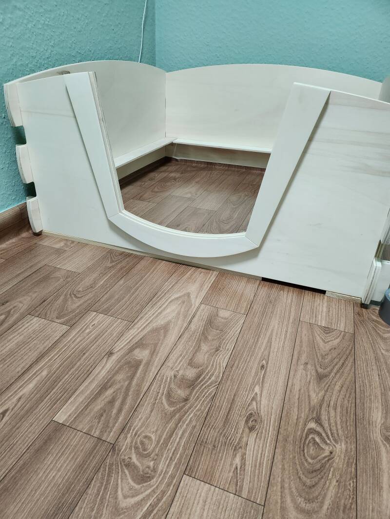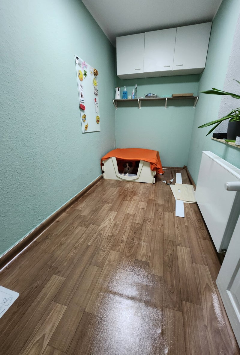 Bevor wir die Wurfkiste final in dem Wurfzimmer platziert haben, haben wir den Raum „pipi-sicher"