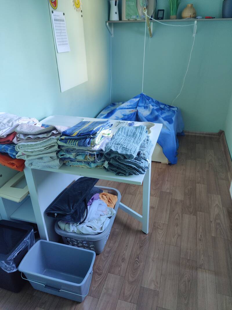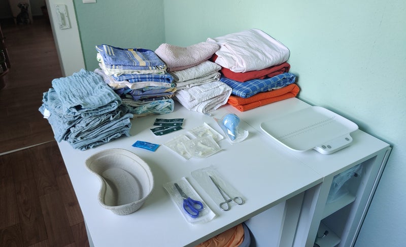 - Laken, Handtücher, Mullwindeln und Einweg-Inkontinenzmatten (und davon sehr viele),