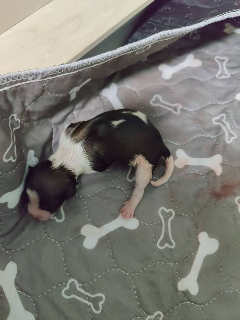 Tatsächlich gab es einen Welpen (Welpe 4/Hündin 2), bei dem wir nachträglich noch Schleim aus dem Mundraum entfernen mussten, damit dieser gut trinken kann.