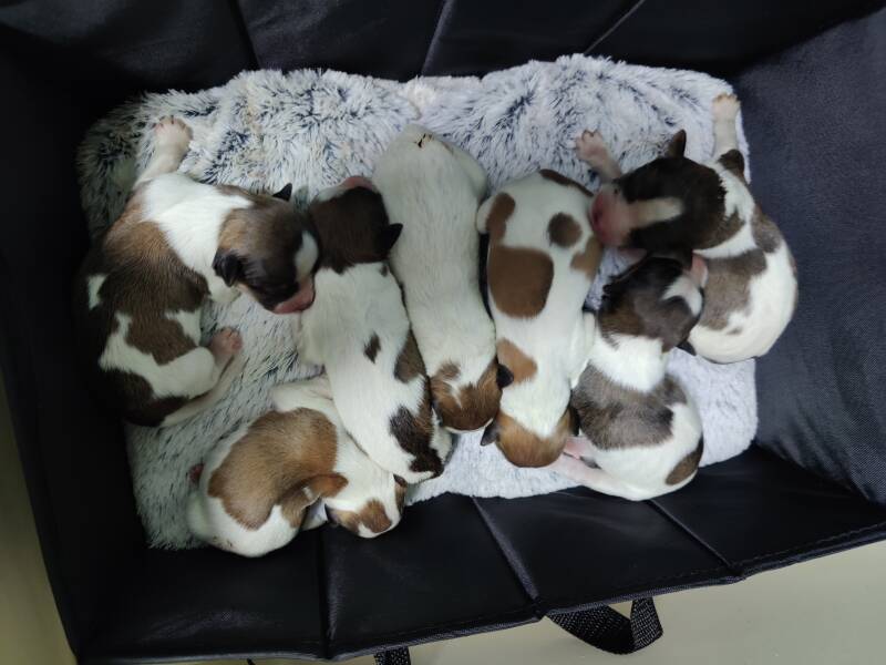 - Körbchen mit Wärmeeinlage für die Welpen, um bei Komplikationen in die Tierklinik fahren zu können,