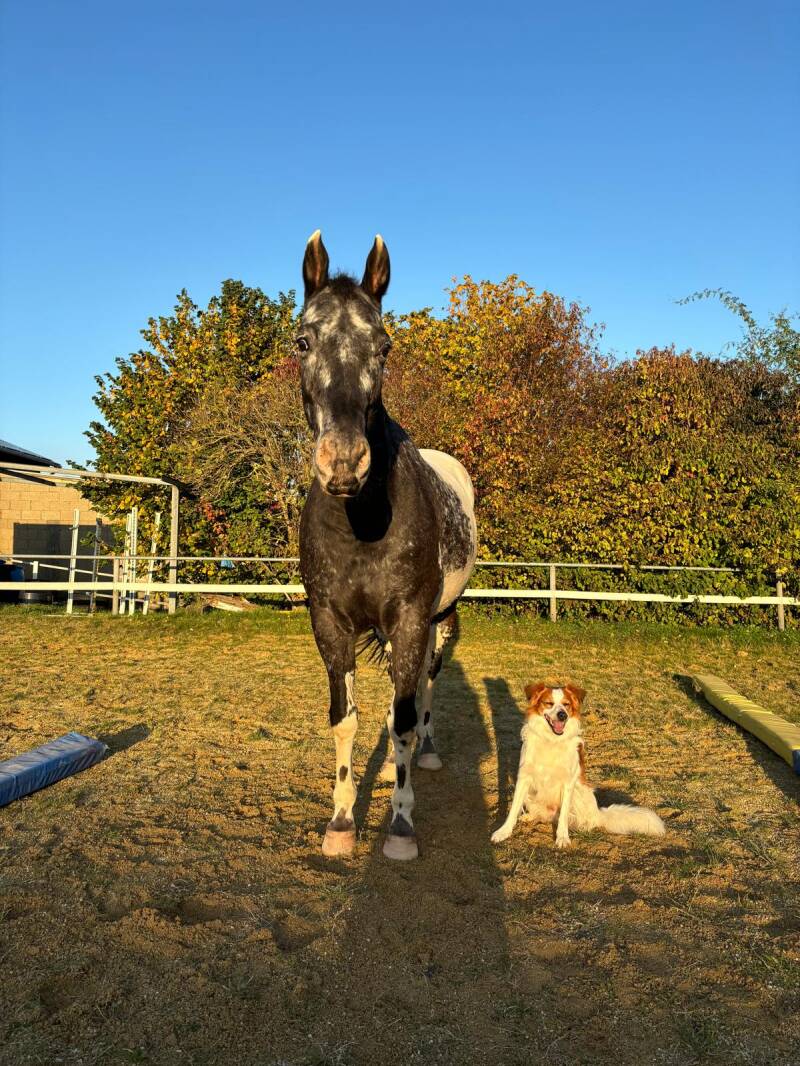 Sein bester Freund ist ein Pferd namens Indians Heatman, kurz Indi. Er genießt die langen Spaziergänge mit seinem Kumpel und seinem Frauchen und freut sich anschließend über lange Streicheleinheiten von seinen Menschen.