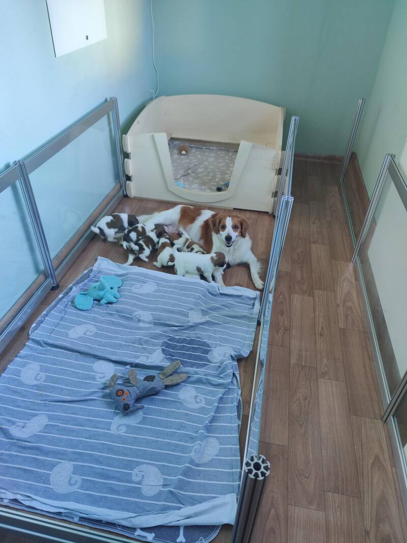 Unsere Rakis werden in einem Zimmer geboren, welches an unserer Großraumküche angrenzt. Hier werden wir unsere Wurfbox einrichten und das Wurfgehege errichten, welches dann je nach Größe und Alter des Wurfes aus dem Zimmer in die Großraumküche hineinwächst (ggf. sogar darüber hinaus). Die Großraumküche ist der Ort in unserer Wohnung, in der unser alltägliches Leben stattfindet, das bedeutet, dass die Welpen von Geburt an unseren kompletten Lebensalltag mitbekommen werden (z.B. Staubsauger, Küchengeräte, den Fernseher, Musik usw.). So haben die Welpen in den ersten Wochen genug Platz, um das Gehege Stück für Stück entsprechend ihren Fähigkeiten und ihrer Entwicklung zu erobern.
