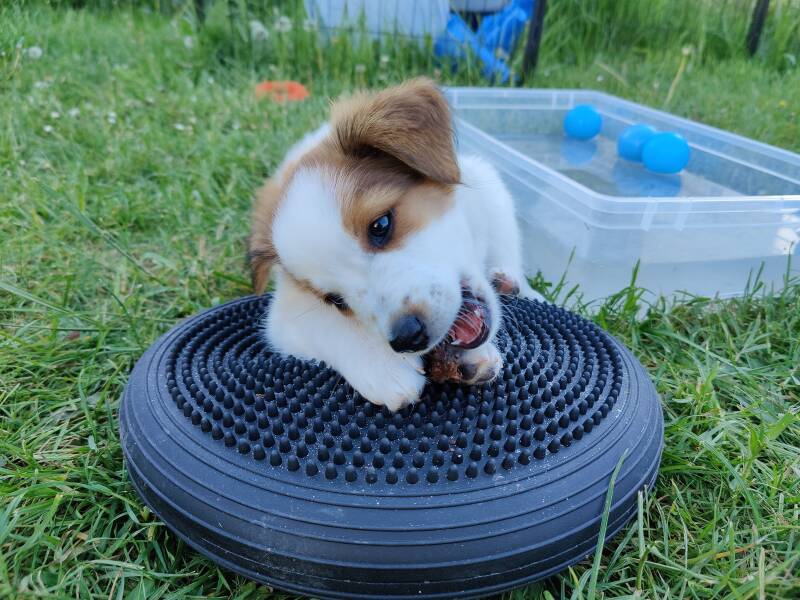 Zwischen der neunten und elften Woche ziehen unsere Kromi-Welpen dann nach und nach aus und bei ihren zu diesem Zeitpunkt bereits absolut kromibegeisterten Familien ein. Ihr Welpe verfügt dann über: